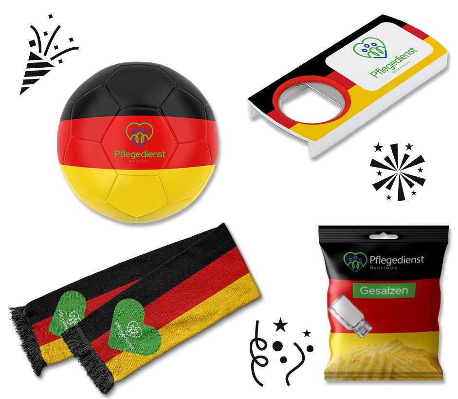 Tauchen Sie ein in die Welt des Fußballfiebers und sichern Sie sich exklusive Printprodukte, die das EM-Erlebnis noch unvergesslicher machen. Von Stiften bis zu Feuerzeugen, über Flaschenöffner! Entdecken Sie hochwertige Artikel im Deutschland-Design mit Ihrem Logo, die perfekt zur EM passen. Egal, ob für Ihr Unternehmen oder als Geschenk für Geschäftspartner – THE KLICK hat, was Sie brauchen, um in EM-Stimmung zu kommen!